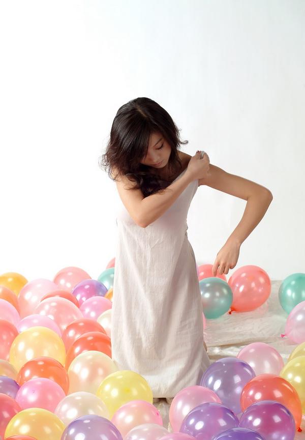 彩色气球中的白皙美模-毓惠