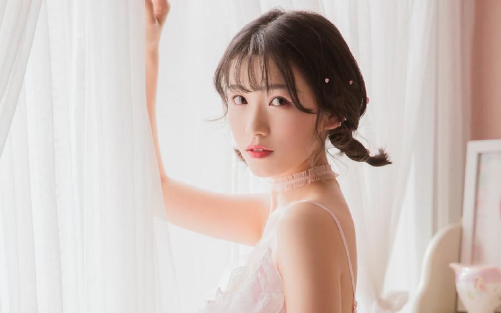 她洗了头发,已经用里面的吹风机略微吹了一下,粉色的女士睡袍系的紧紧地,包裹着她曼妙的身体。她双手紧紧扣着,不好意思的看着我,表情局促不安,好像刚入洞房的新娘子。