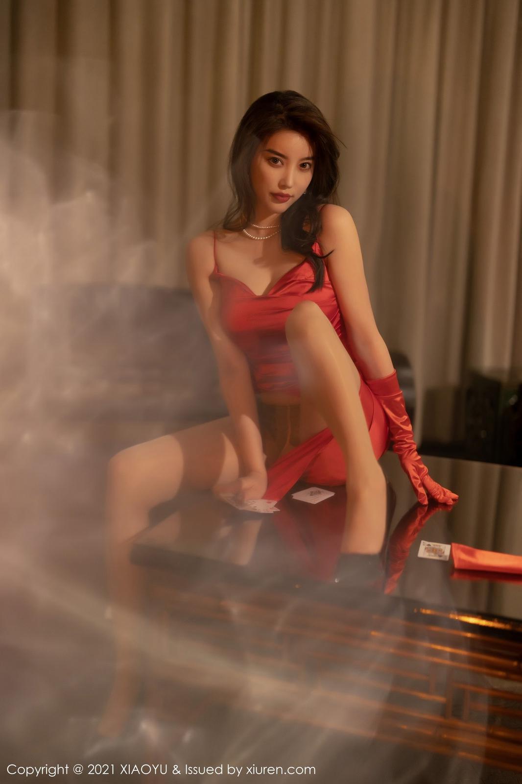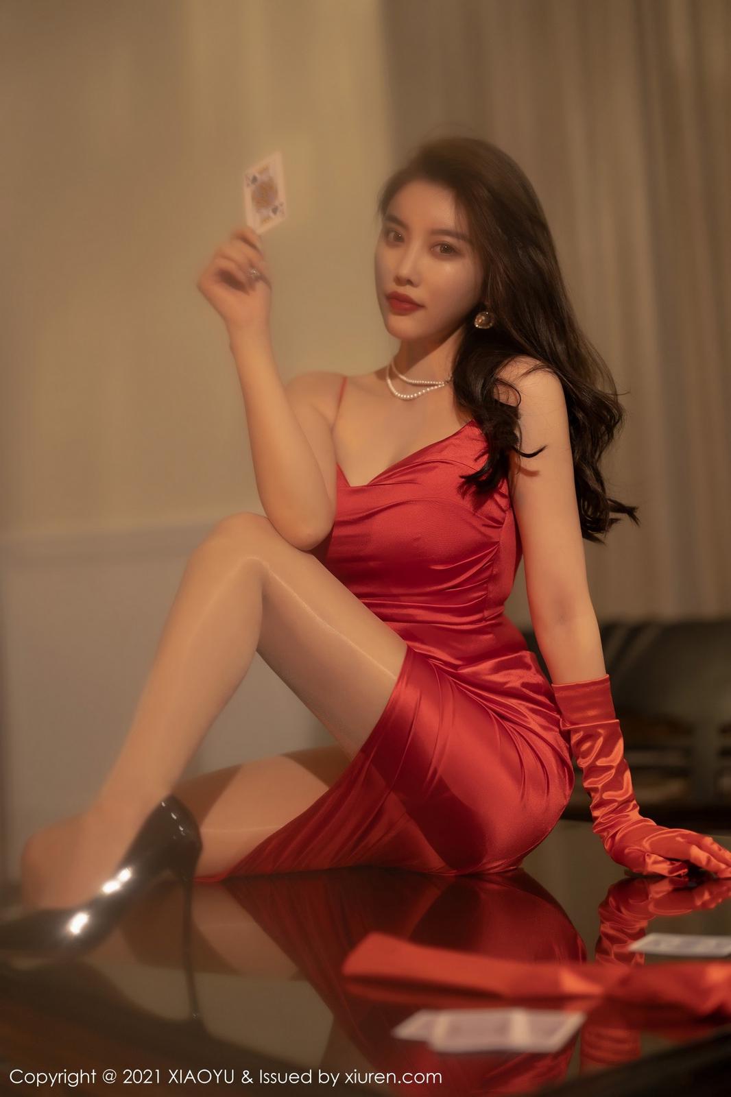 【色图】杨晨晨Yome 猩红吊裙荷官女郎装束