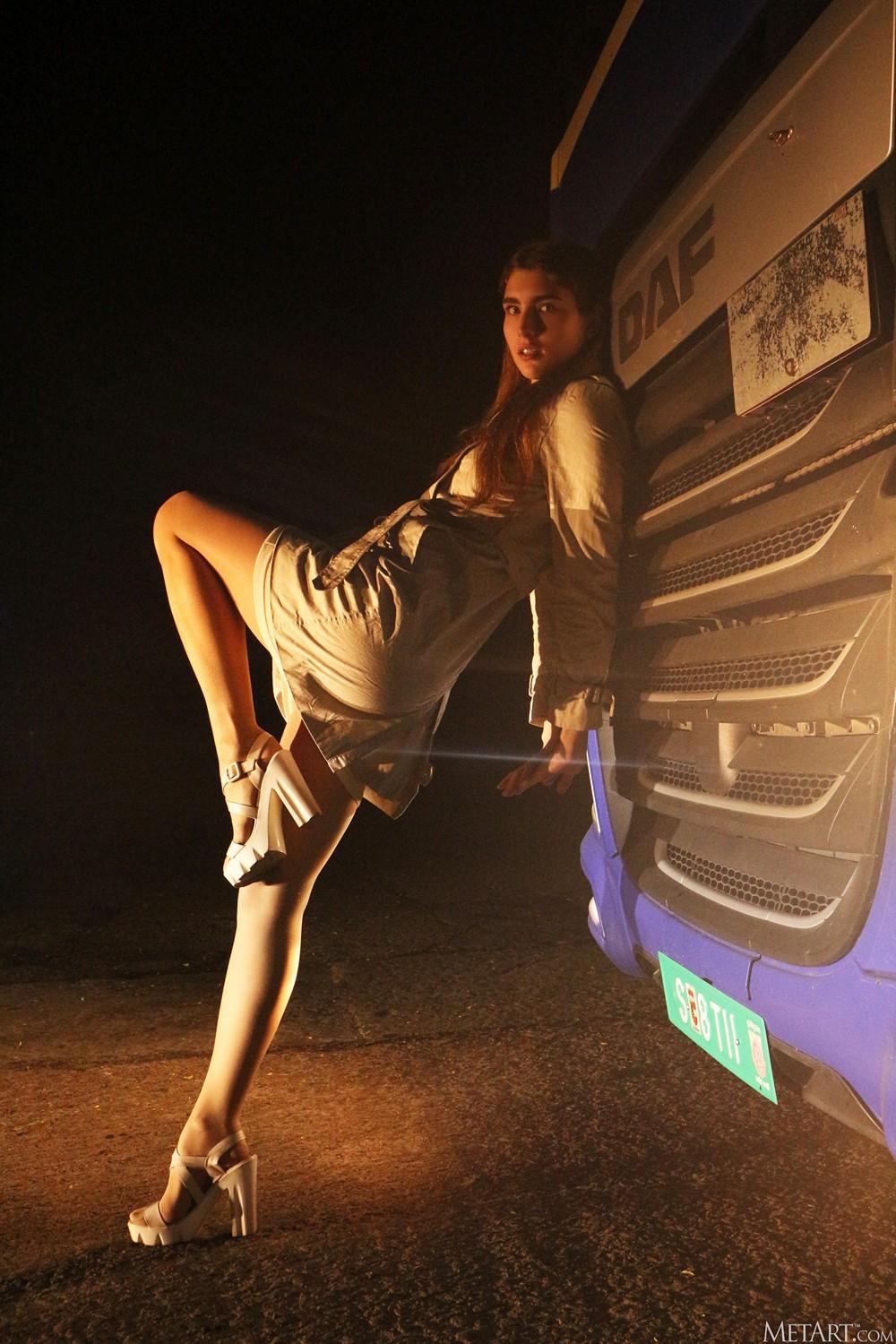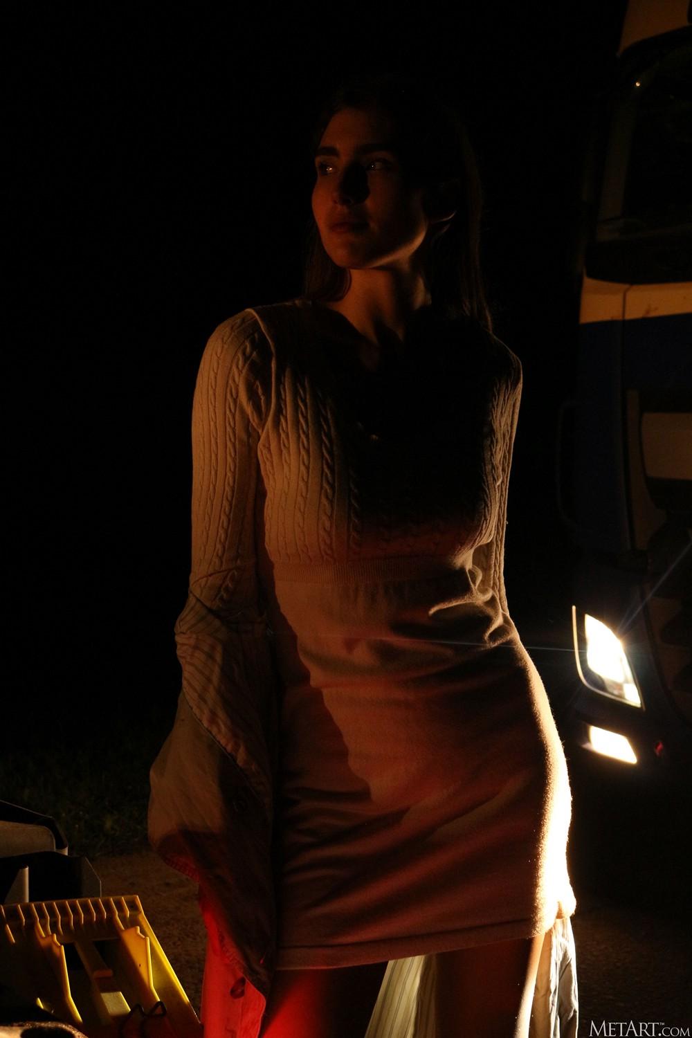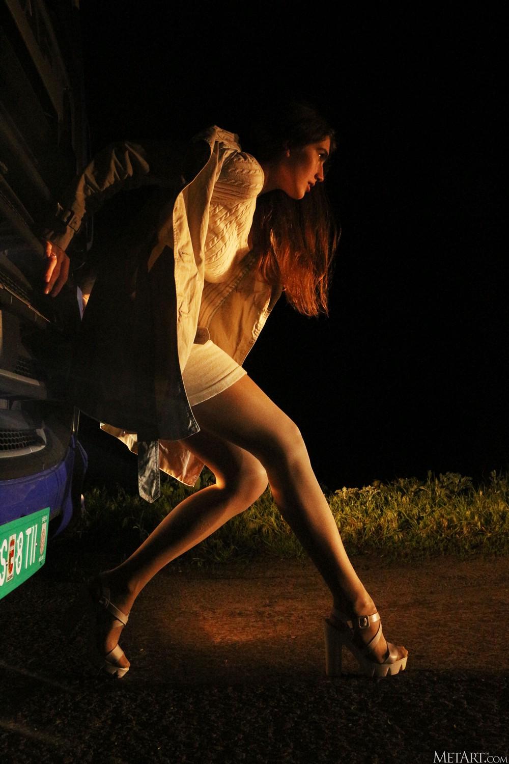 【色图】淫荡少女大半夜的在公路上裸露拦车