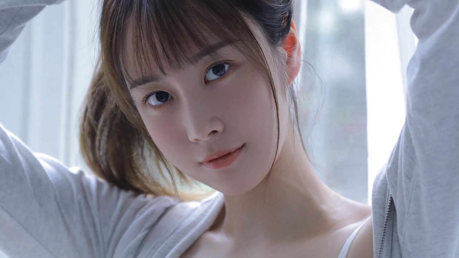 「快了,他说到楼下了。」她微笑着回答,露出一排洁白牙齿。