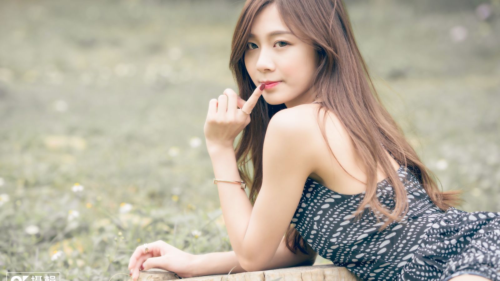 一旁的男人则是浅灰色的西装,笔挺的背脊,一手轻轻搭在少女腰上,好似一对郎才女貌的情侣