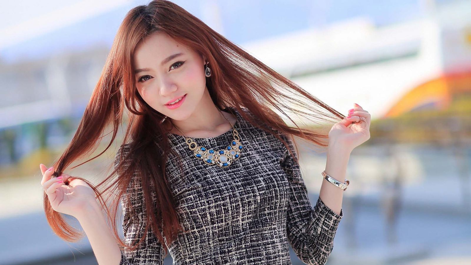 在干净整洁的高铁车厢里,一对男女坐在一起。女性身材高挑丰满,长相清纯美丽,有一头柔顺的亚麻色长直发;男性则身材长相都只能用普通来形容,留着普普通通的碎发。女性穿着一件无袖衬衣和一条紧身短裙,简约的衣着凸显出迷人的身体曲线,过膝的黑丝勾勒出肉感的腿部线条;而男性只是普普通通的穿着T恤和牛仔裤,像是个打工仔。尽管外貌看起来不很般配——但举手投足间两人的默契却给人一种极为亲密的感觉,像是热恋中的情侣或是新婚的夫妻。