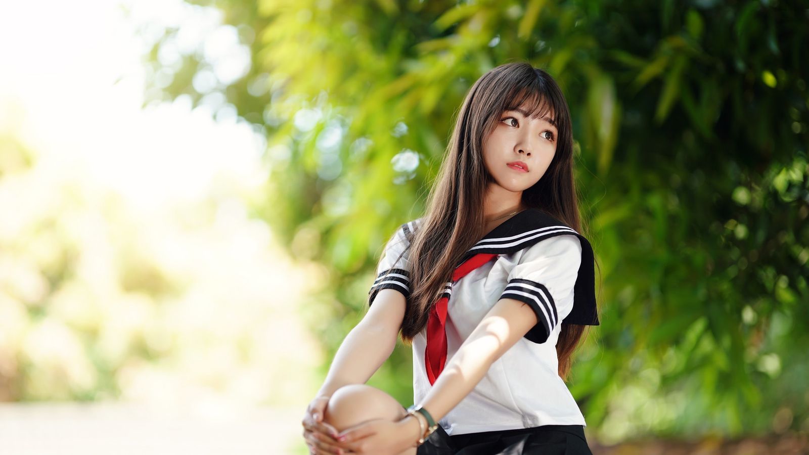 女孩儿穿着吊带裙,绸缎般的乌发披在身后,笑容温婉。