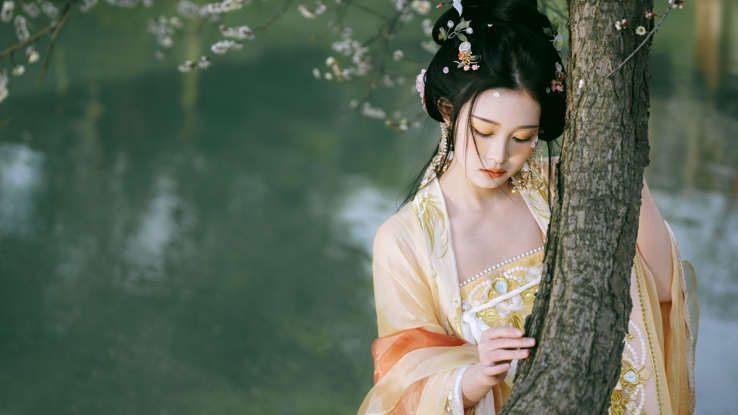 忽然,不知从哪儿射过来白光,跟宝剑似的,直冲冲地朝他的眼睛刺来,一个闪动之间就命中了他。他烦躁得想打人了。他试图用袖子把亮光扫开,谁知每挥动一下手臂,那光便刺一下,令他收紧的牙关呲呲发痒。定睛一看,原来是林黛玉的头发,在阳光下绽放出钻石般的光泽。斑驳的阳光像一群调皮的小鱼,在少女胜过明镜的肌肤上游泳。那水汪汪的、金灿灿的模样,几乎要胜过一头有人性的母牛的眼神。走到树阴叶翳处,鱼儿们又忽地扑通一下,好似逐渐融化的酥酪般潜到水底去,只在空气中余下隐约的甘甜,便不再冒头了。啊,对了,武松又想起来一个故事:林黛玉的头发厚得半点发缝都看不到,如果是因为所梳发型不得不显露出一溜白路,她会想办法用饰品或者鲜花遮住,总而言之,绝对不能让发缝出现。