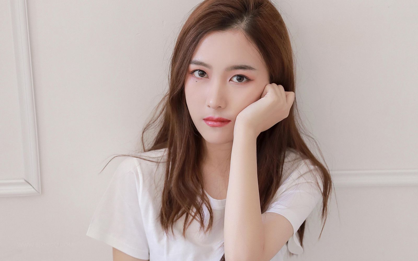 她的玉足踩着一双米色的家居拖鞋,葱白如玉的美脚都包裹在拖鞋里。