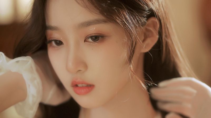 他的目光一寸寸向上移,仿佛在欣赏自己创造的艺术品。栗色发丝落在她的肩膀,遮住了令人羡慕的天鹅颈,仿佛有意保护着这副身子的主人,而娇艳欲滴的唇瓣却微张,性感中透露出一丝可爱。
