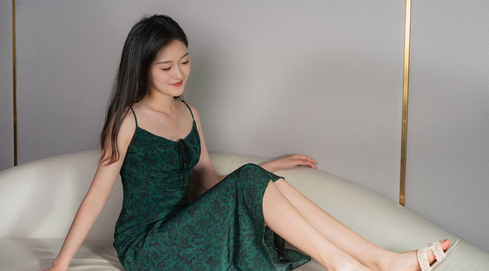 雪藕般的柔软玉臂,一双双如葱尖如温玉的小手上十根修长柔美的玉指,盈盈一握的芊芊细腰,给人一种娇柔万分的曲线美感,小腹没有一点赘肉平滑而有弹性。一双腿型纤细、晶莹雪白可以算上是极品的美腿包裹着灰色丝袜,透着诱人的柔美线条,而且骨肉均匀,修长削直。脚穿一双黑色细带高跟鞋,细长的美腿冰肌玉肤,柔滑洁白,散发着莹润的光泽,脚背浸透着青筋。
