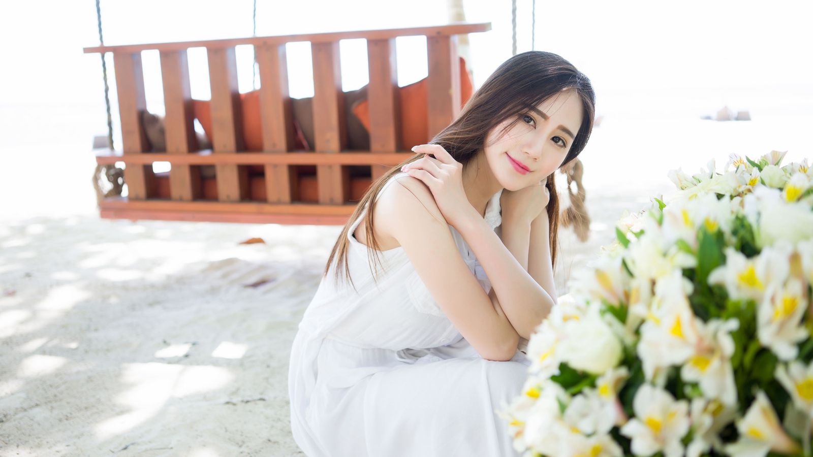 一头微卷的韩式波浪秀发披散在肩上,随着微风轻轻摇曳,乌黑发亮,映衬着那如雪般白嫩的皮肤,更添几分诱人的风情。