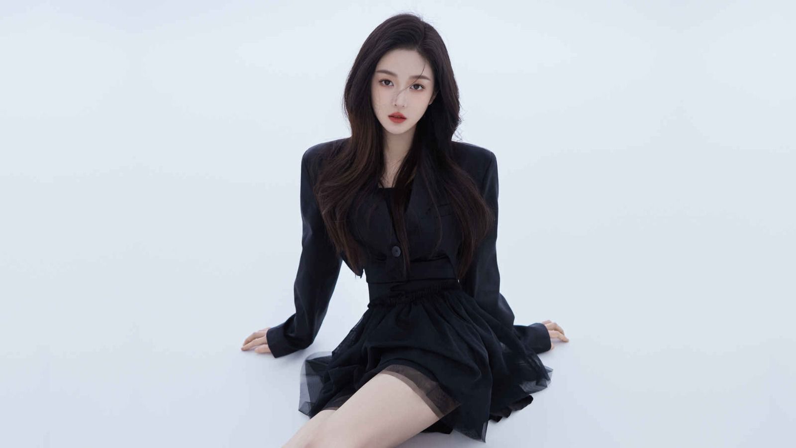 陈芊芊今日身着黑色长裙,包裹她柔美的身姿,发髻由簪挽起,皮肤白皙,不施粉黛,尽显温婉。