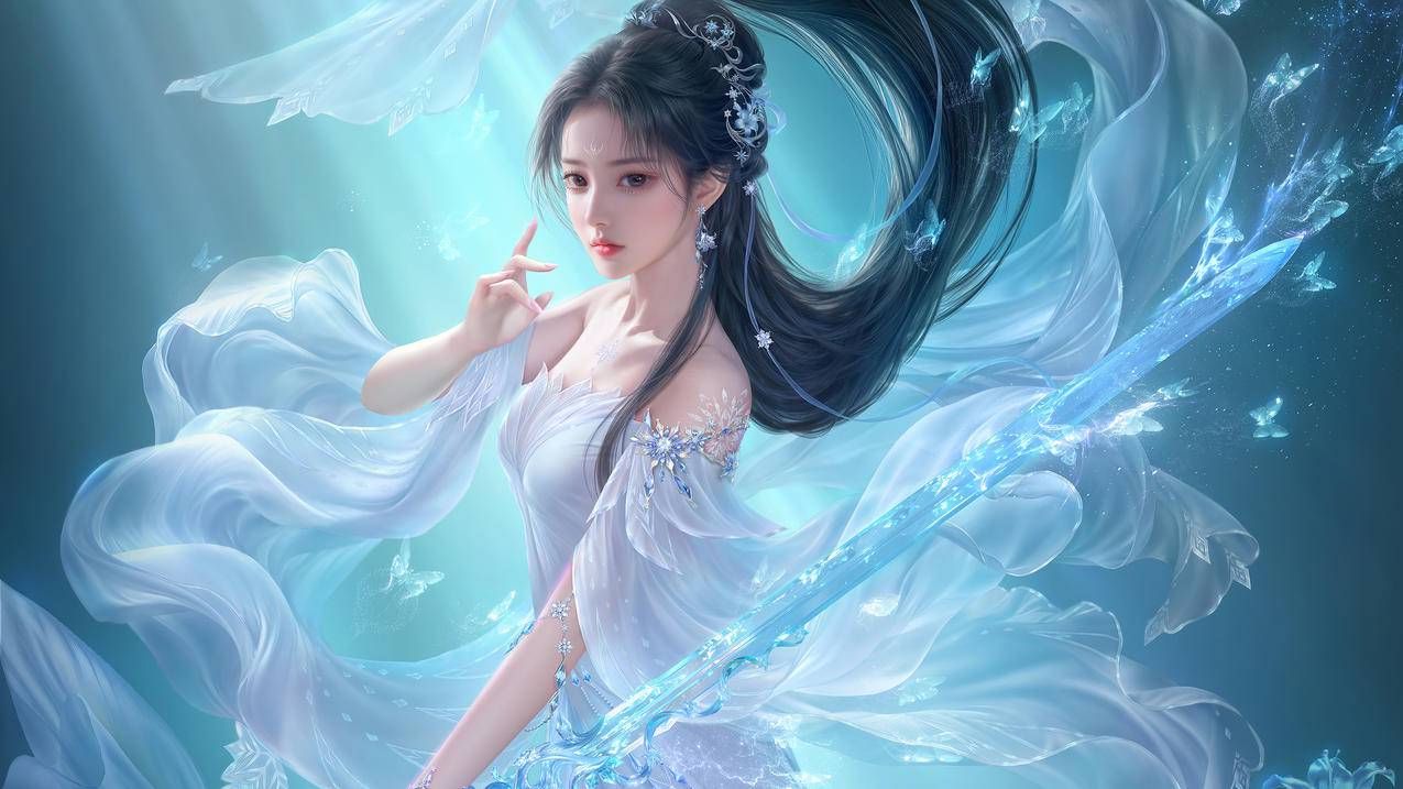 银色的长发像流淌的星河,挽成优雅的发髻,发髻两边还有两片发着微光的小翅膀轻轻扇动。