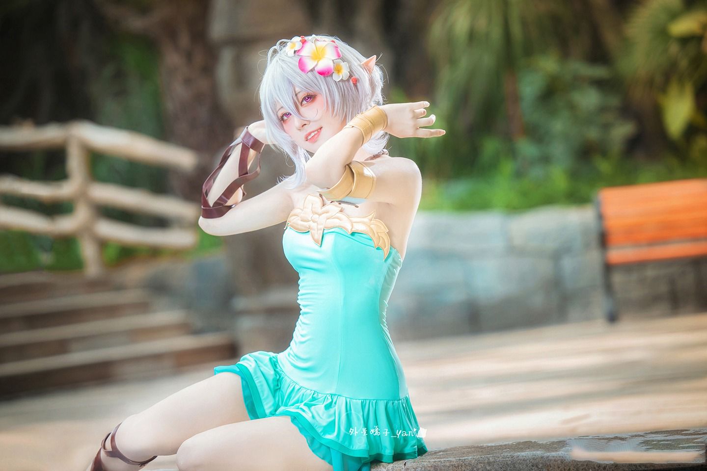 然而,这件连衣裙的裙摆却短得惊人,仅仅是勉强遮住臀部,属于标准的“齐逼短裙”。