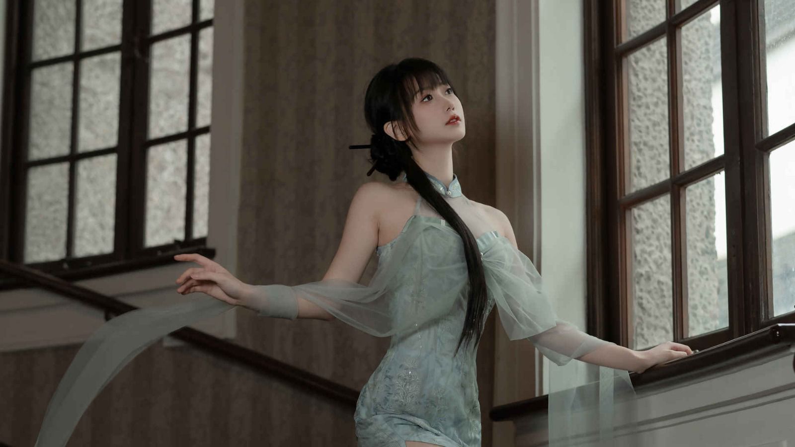 崔裕将她抵在楼梯口的墙角之中,头顶的小窗被暴风雨刮得哐啷?作响,锦铃的注意力集中在剧烈晃动的玻璃上,她瞥着头顶,轻声喊他:“阿裕?”